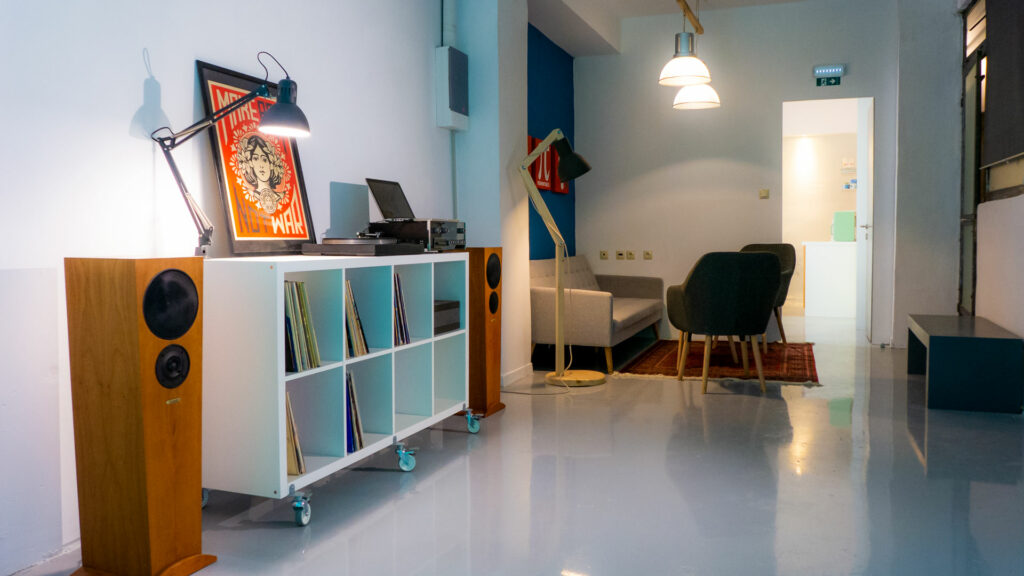 Vdsl internet και μεγάλο lounge χώρο αναμονής με ηχητικό εξοπλισμό με πολλά βινύλια.