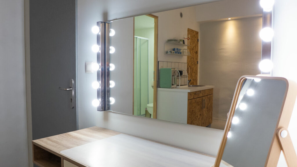 Διαθέτει καμαρίνι κατάλληλα διαμορφωμένο για make-up & hair styling. και μπάνιο με ντουζιέρα.
