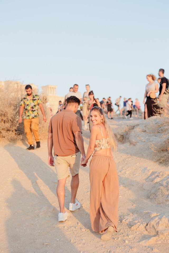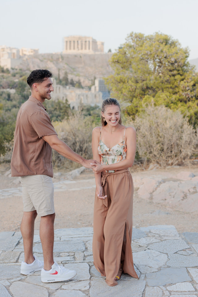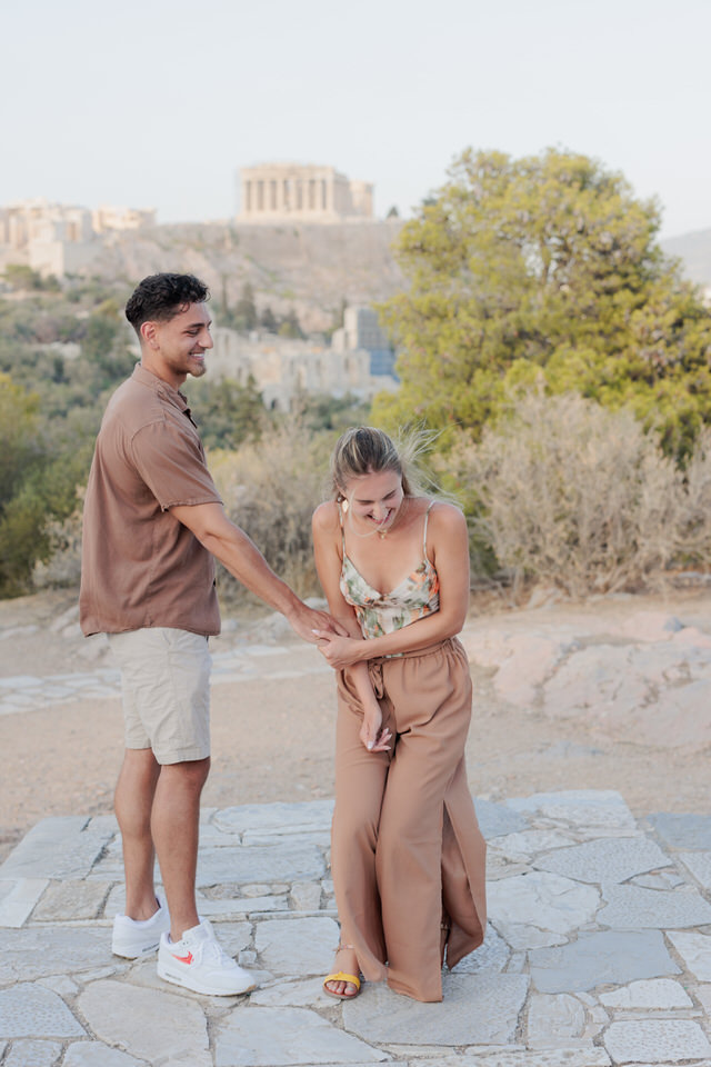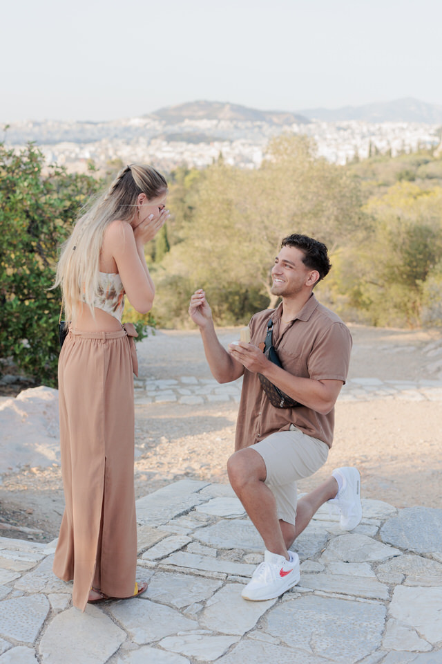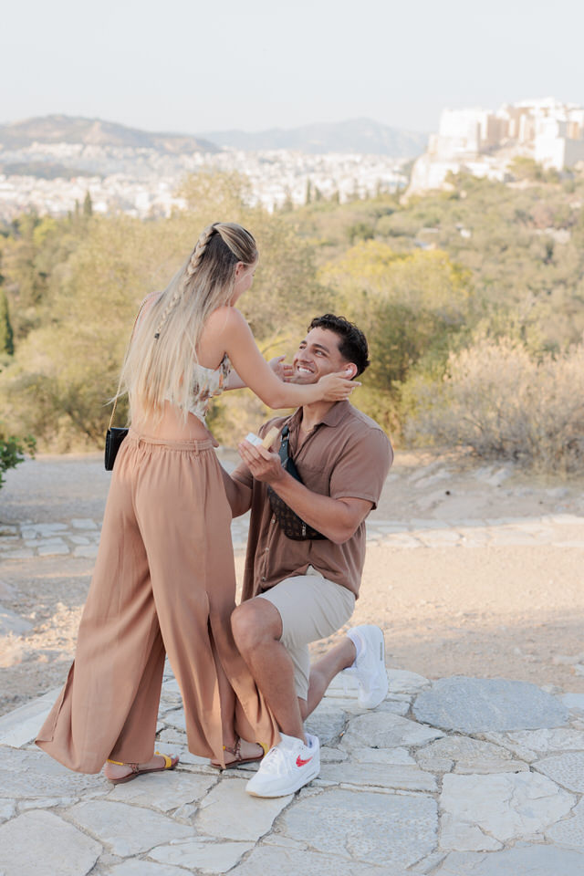 The surprise proposal in Athens happens at a specific time so that we would have excellent natural light.