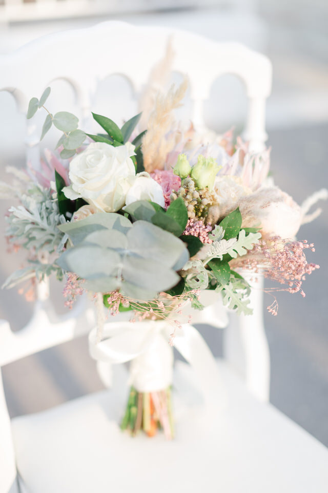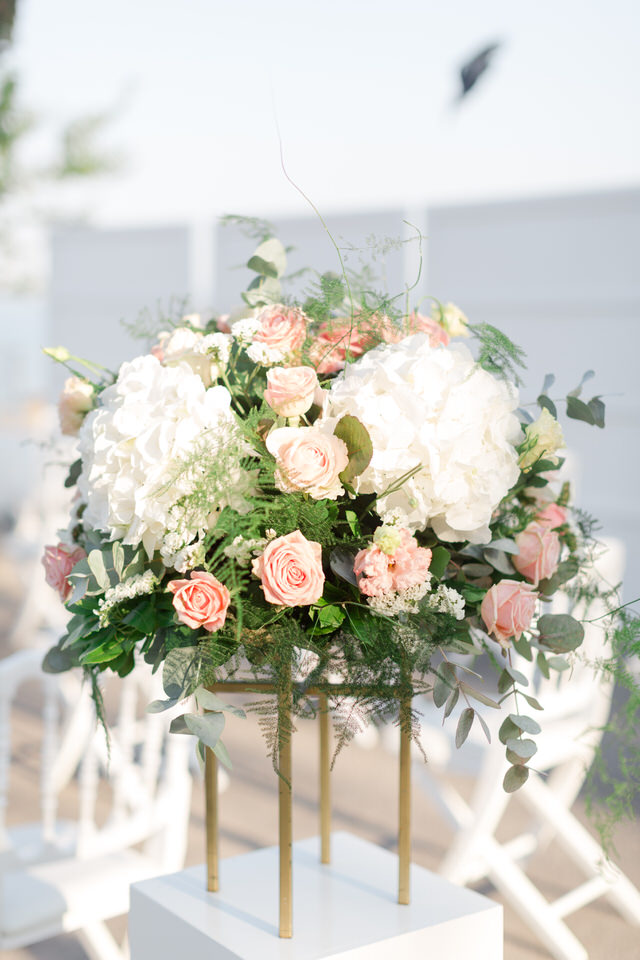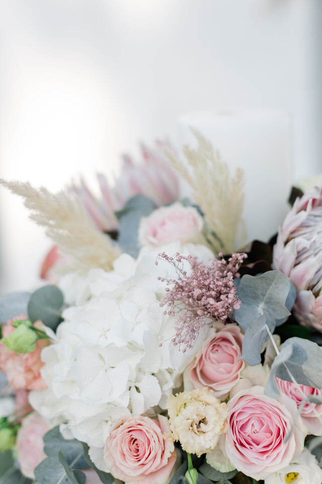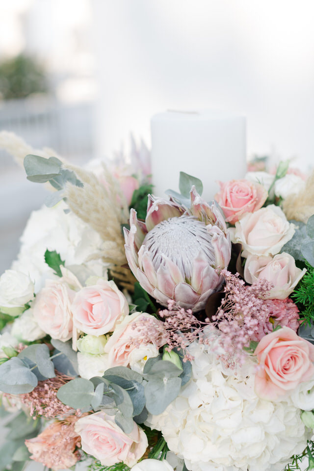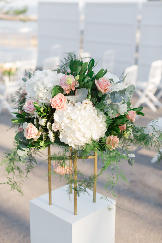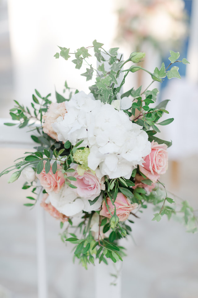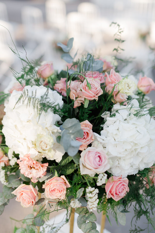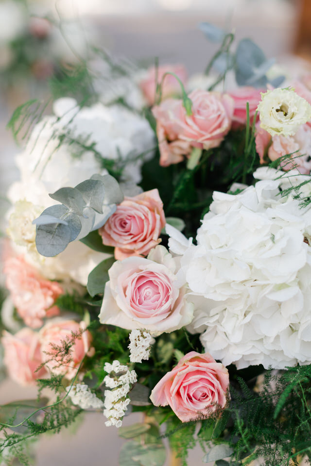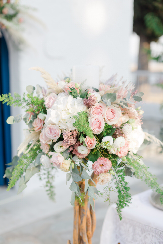 Special all these beautiful white cream and pink flowers transform Greece’s wedding into a unique fairy tale, making the heart beat faster.