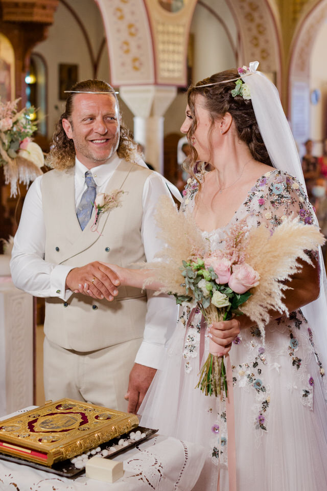 The wedding took place in the Metropolis of Thira, in one of the most beautiful spots of the Santorini Caldera.