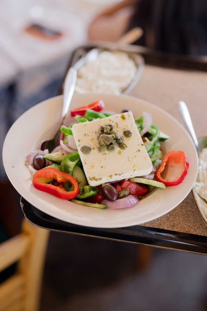 Housemade Moussaka, fresh local salad with “feta” cheese, fish soup, spinach pie, and of course, Tzatziki.
