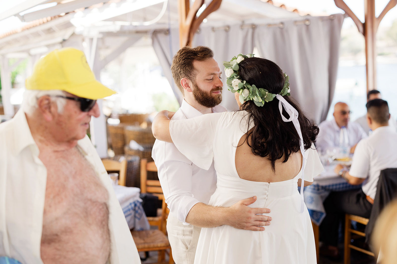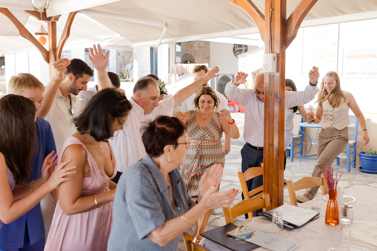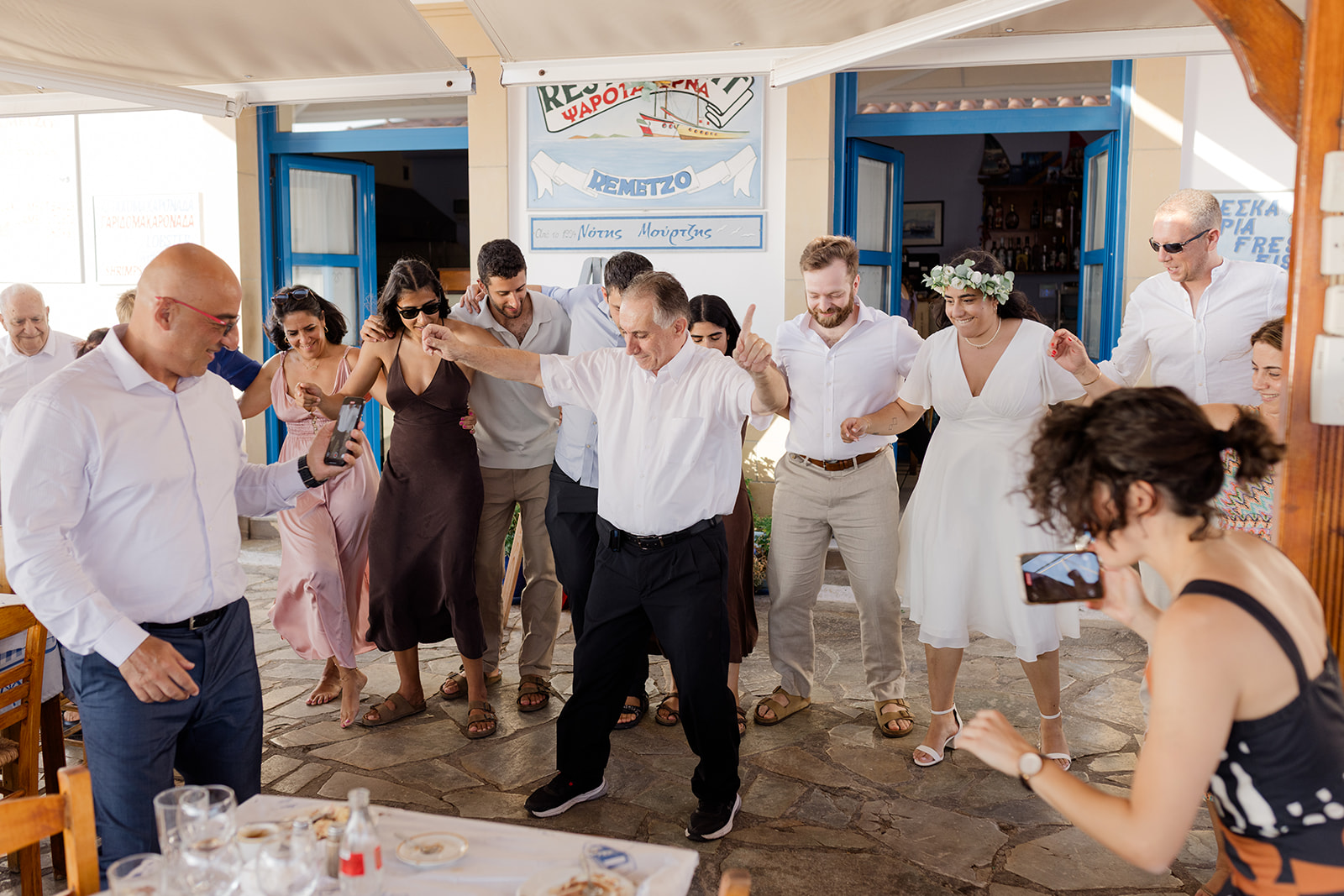 Below you can see the newlyweds and their guests dancing the Sirtaki Zorbas.