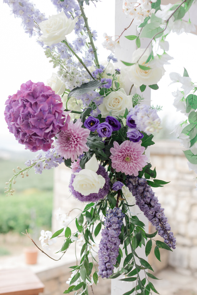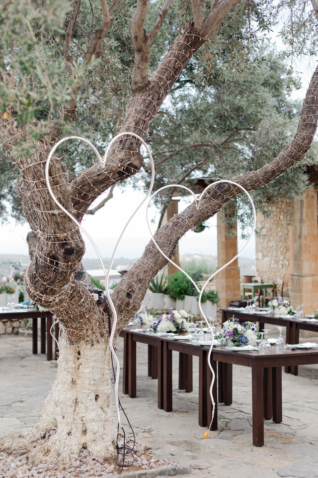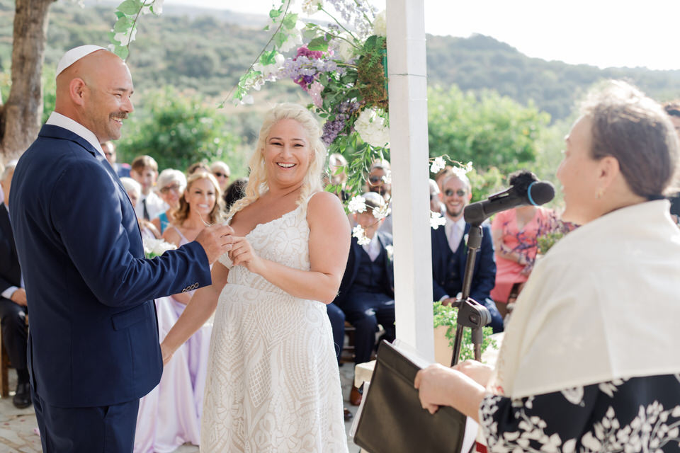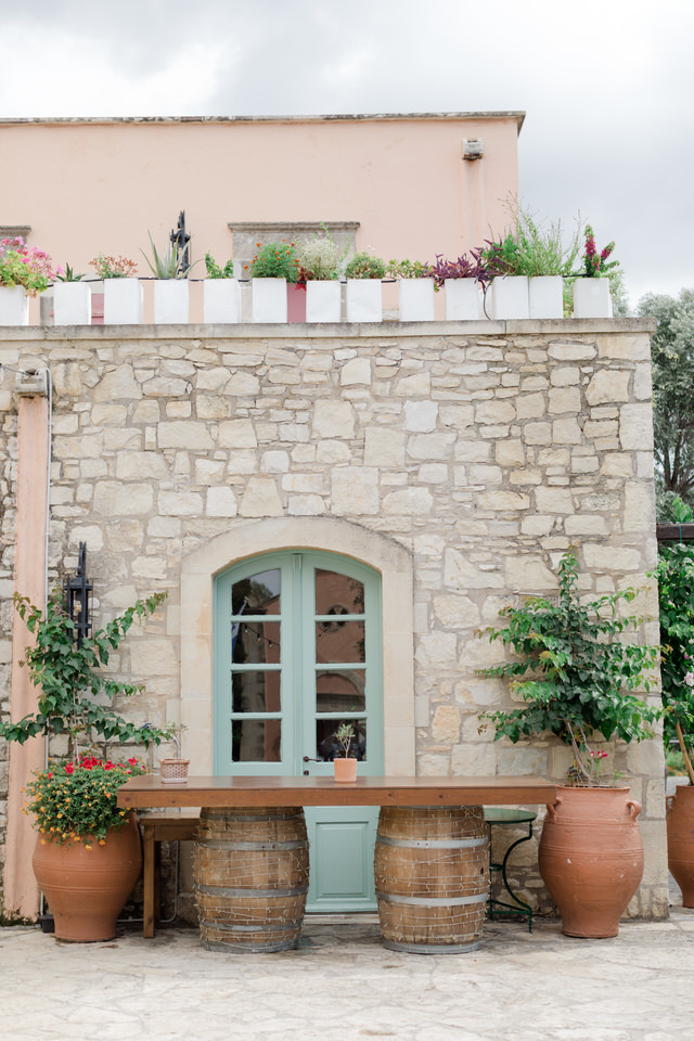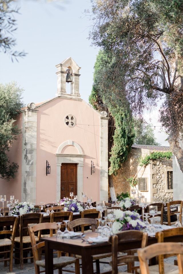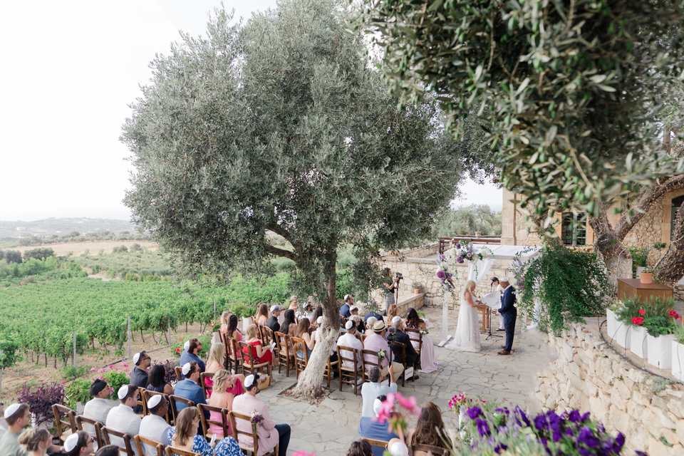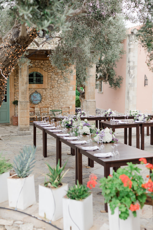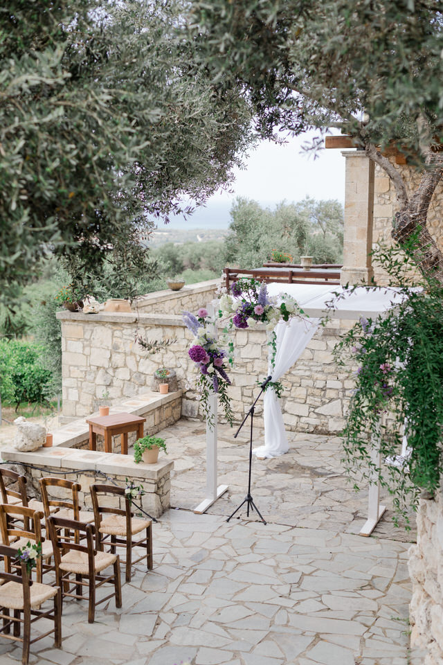The wedding ceremony was at Agreco Farm in Rethymno, Greece.