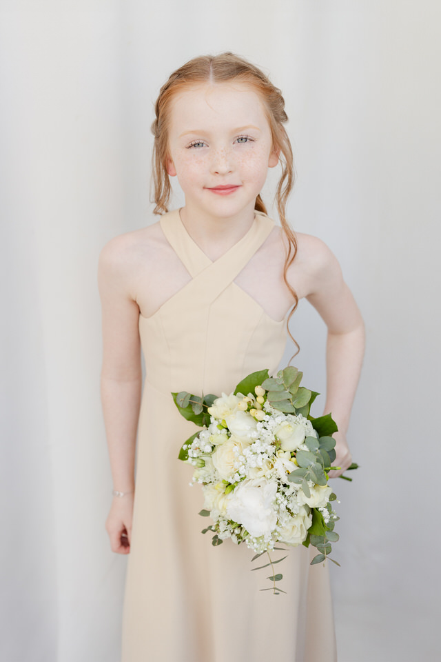 As I captured the details, the little girl took her mother’s wedding dress and posed with a big smile.