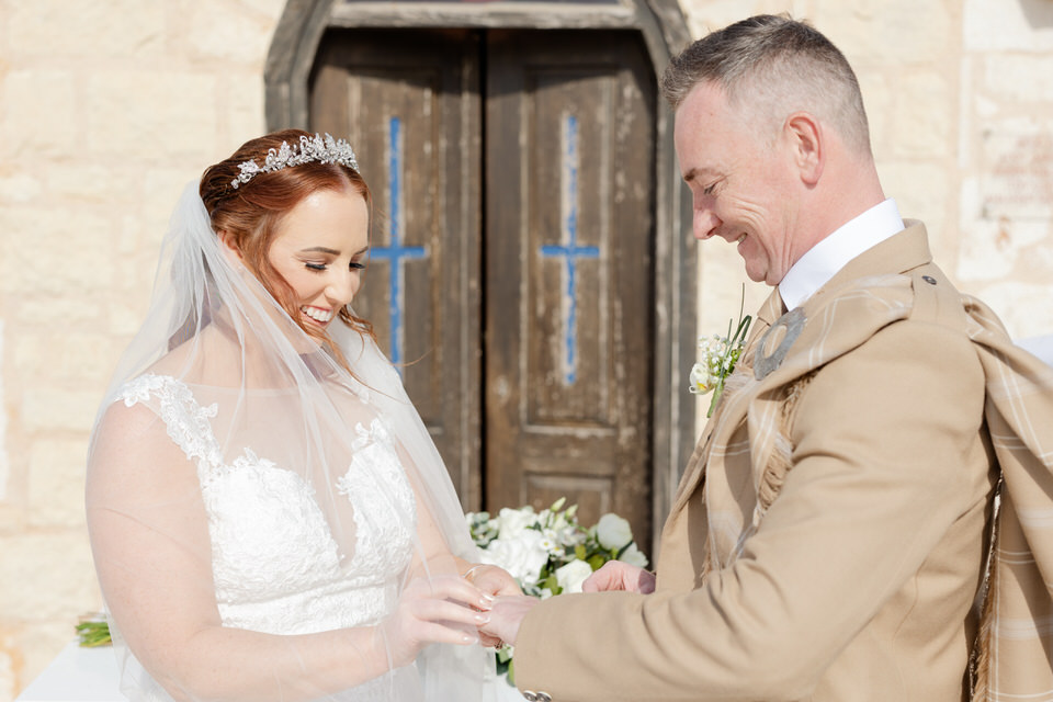 A couple from Scotland exchanged vows in front of their two daughters and their parents.