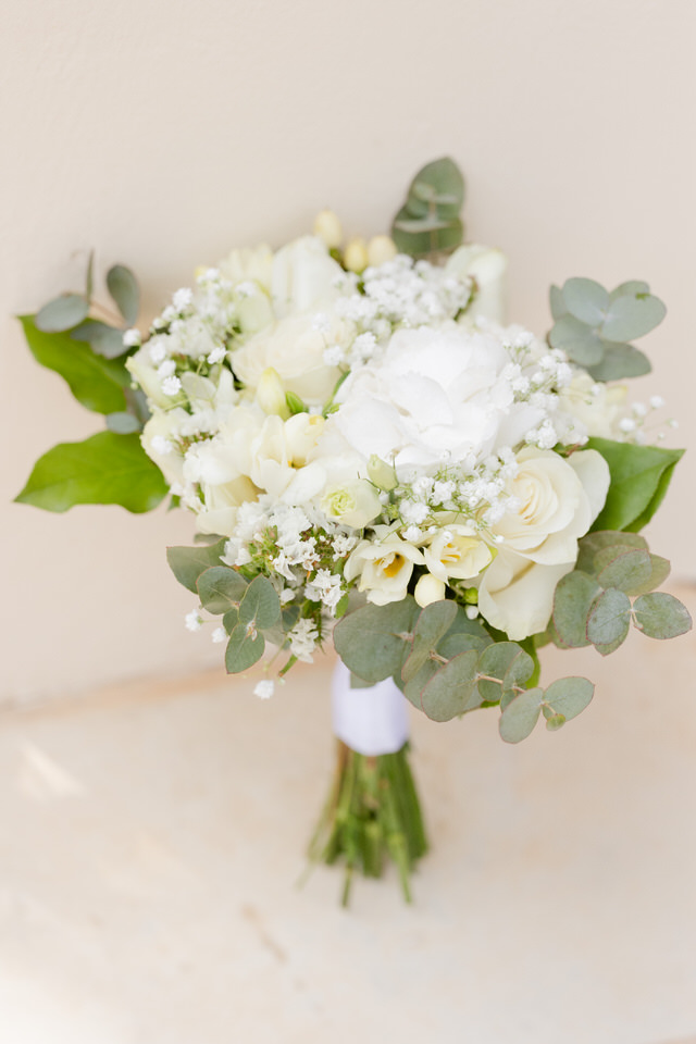 The setup was simple yet elegant: olive branches and white roses, a scattering of petals along the aisle.