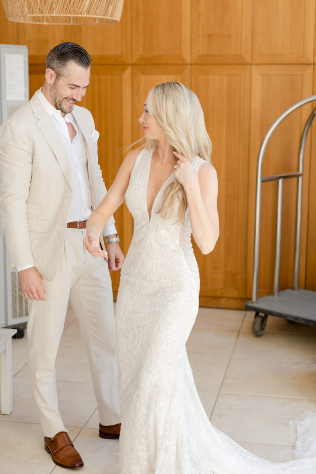 Tom and Shatton decided to get ready in the same suite, a touching choice that gave them a unique character.