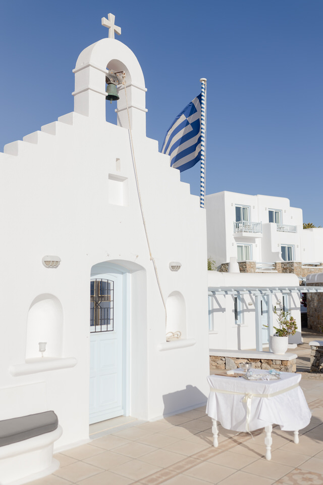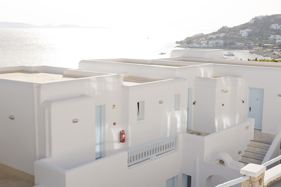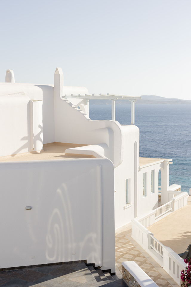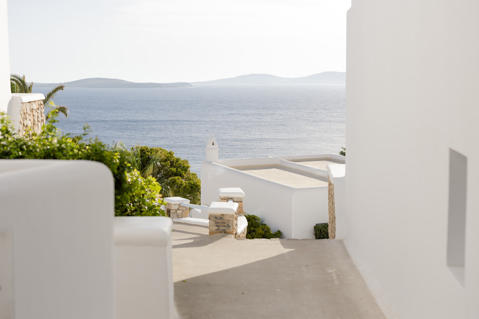 With its pure white structures, the resort presents breathtaking views and magnificent Mykonian architecture.