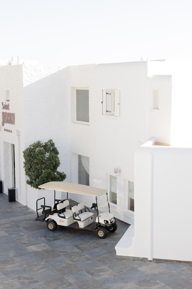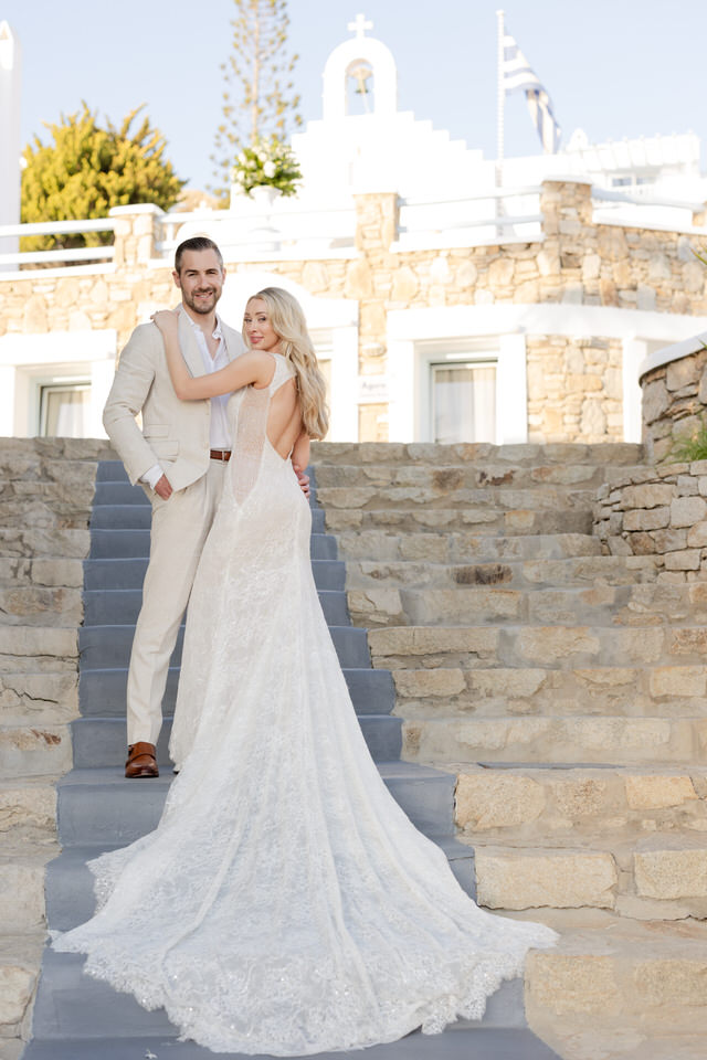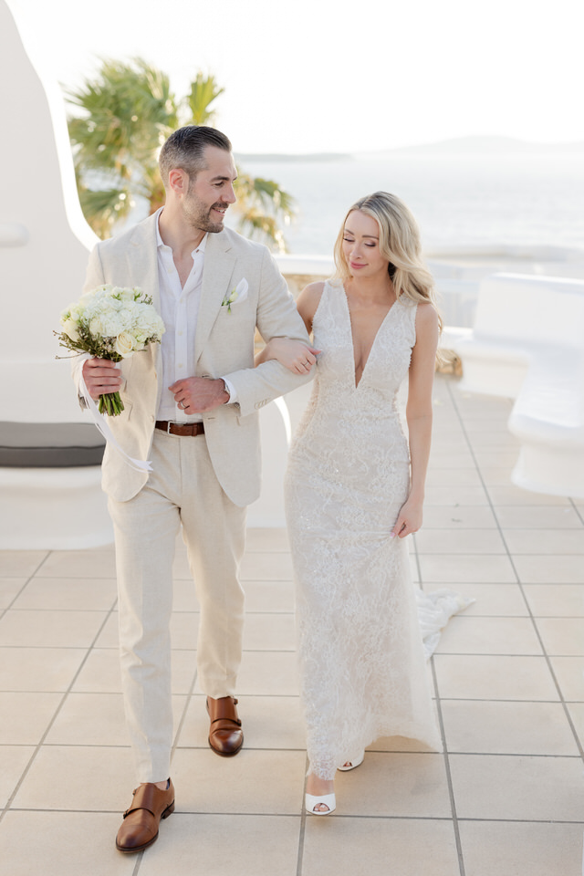The pair headed to the Saint John Mykonos Beach Resort & Villas for the wedding once it was ready.