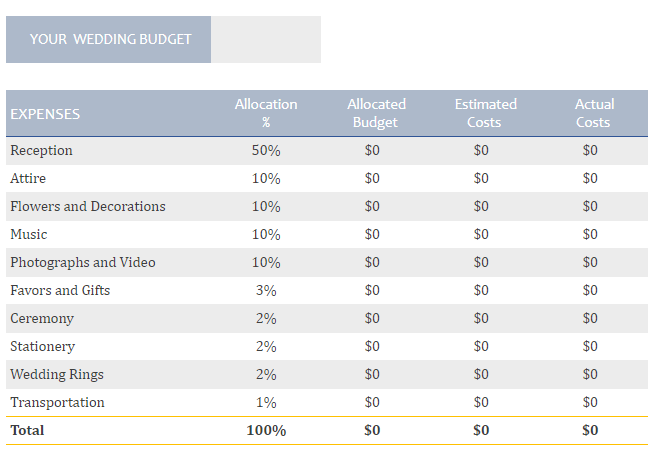 So it might be more helpful to consider your wedding budget in percentages.