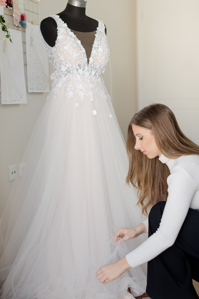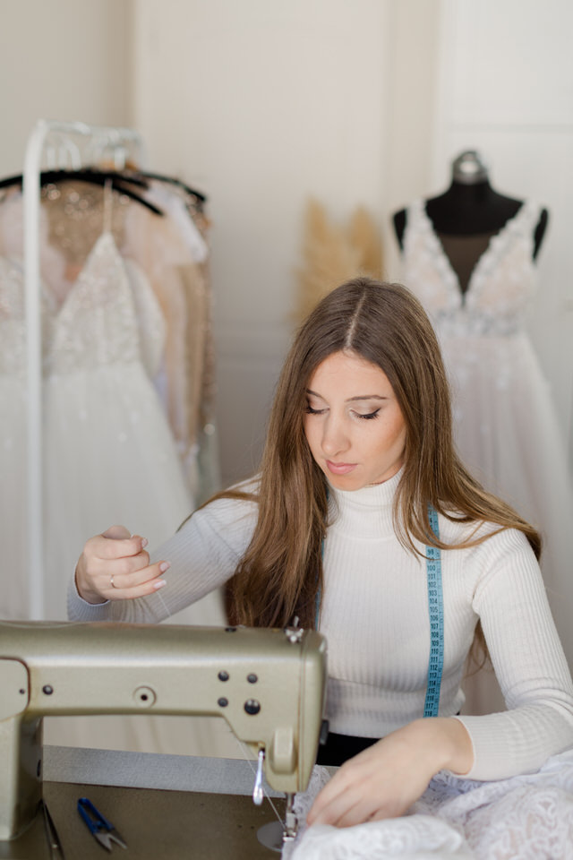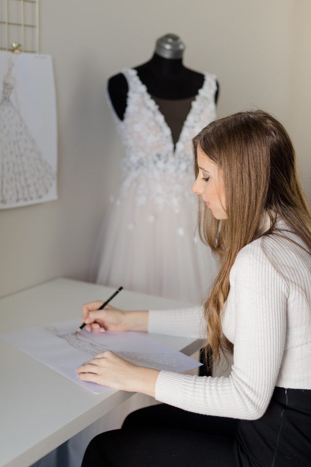 Each wedding dress is unique and tailor-made according to the bride’s wishes and style.