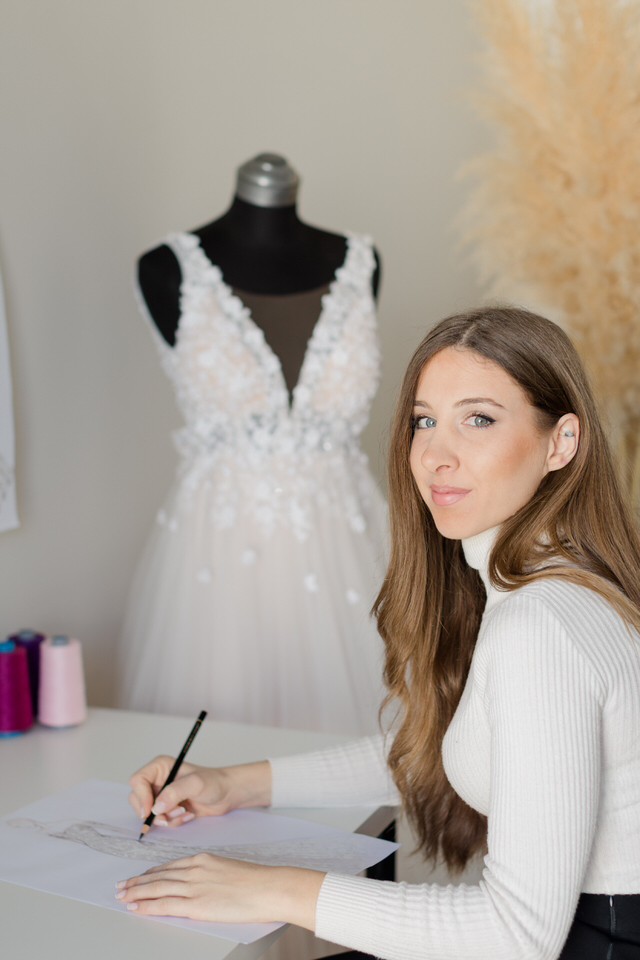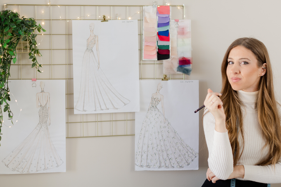Hello, my name is Eirini Aggelopoulou, and I am a bridal designer based in Athens.